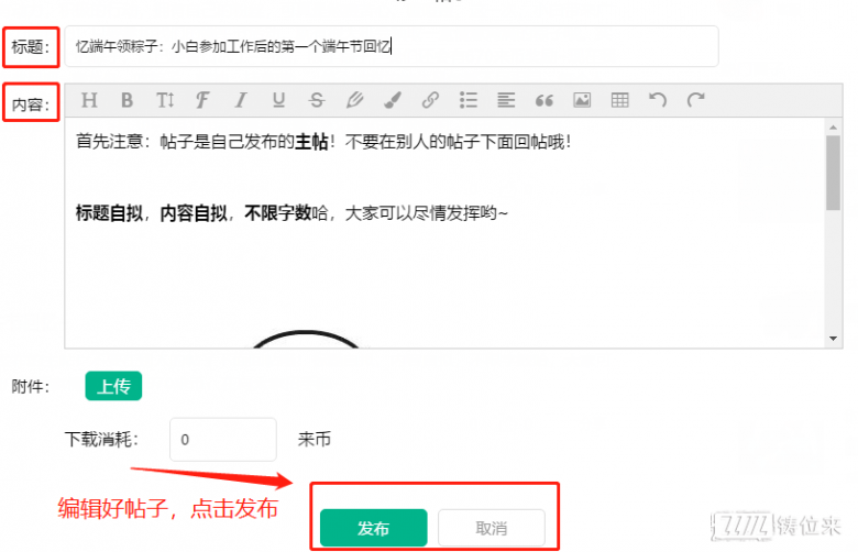 活动参与步骤:①在铸位来网站的“好玩有料活动圈”中,发布帖子,(是自己发的主帖,不是在别人发的帖子下回帖哦),分享出你印象最深刻的端午节回忆