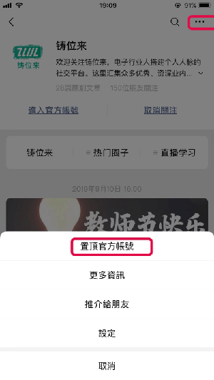 3、公众号置顶: