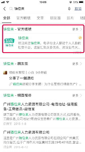 2、在微信搜索框输入 铸位来 ,关注公众号,通过公众号菜单栏即可进入;