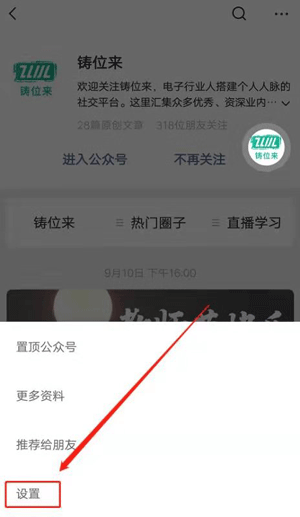 进入铸位来公众号后,点击右上角“...”,点击“设置”,进一步选择“添加到桌面”,即可在手机桌面直接进入公众号,再通过公众号进入 铸位来;